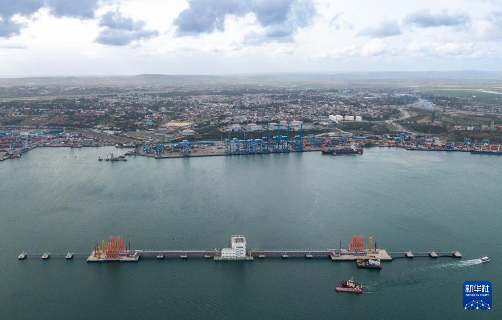 这是2024年8月15日在肯尼亚蒙巴萨拍摄的油码头和蒙巴萨港(无人机照片)。 新华社记者 王冠森 摄