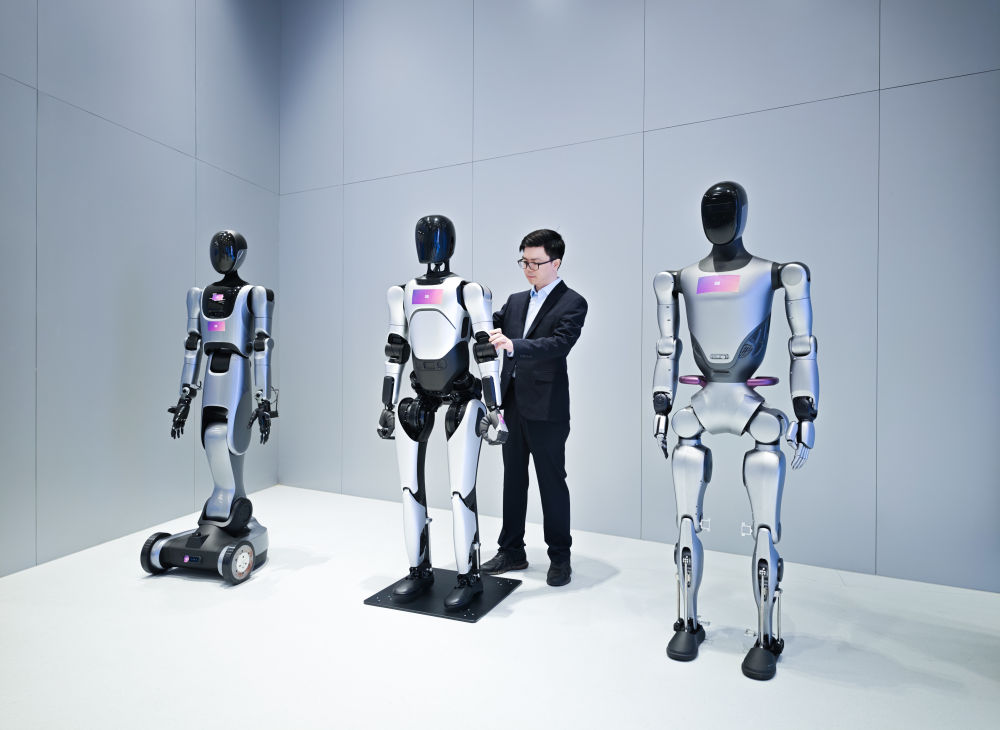 2025年4月29日,工作人员在“模速空间”调试人形机器人产品。
