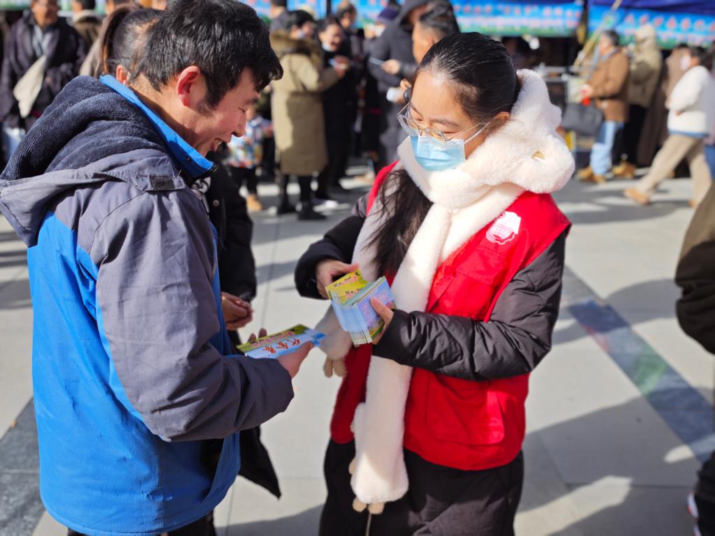 王福华(右一)在玛曲县参加志愿活动(摄于2024年12月)。(受访者供图)