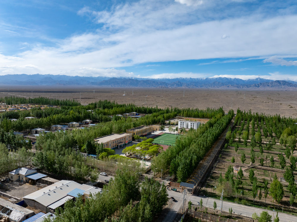 这是4月23日在新疆克州阿图什市哈拉峻乡拍摄的谢依特小学(无人机照片)。