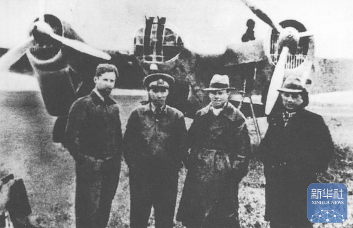 在中国人民抗日战争的艰难时刻,苏联援华航空队在南京、武汉、重庆等地“鹰击长空”、阻击日寇,许多飞行员献出宝贵生命。这是抗日战争时期,中苏飞行员在汉口机场的合影。