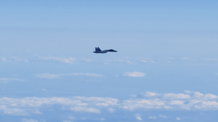 习近平乘坐的专机进入俄罗斯领空后,俄罗斯空军战机升空护航。