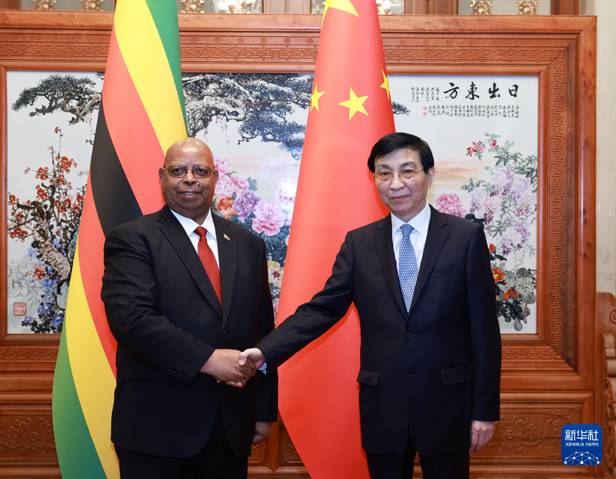 5月14日,中共中央政治局常委、全国政协主席王沪宁在北京会见津巴布韦众议长穆登达。新华社记者 王晔 摄
