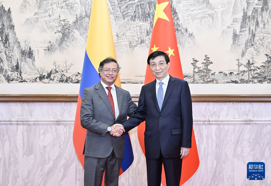 5月14日,中共中央政治局常委、全国政协主席王沪宁在北京会见来华出席中拉论坛第四届部长级会议的哥伦比亚总统佩特罗。新华社记者 岳月伟 摄