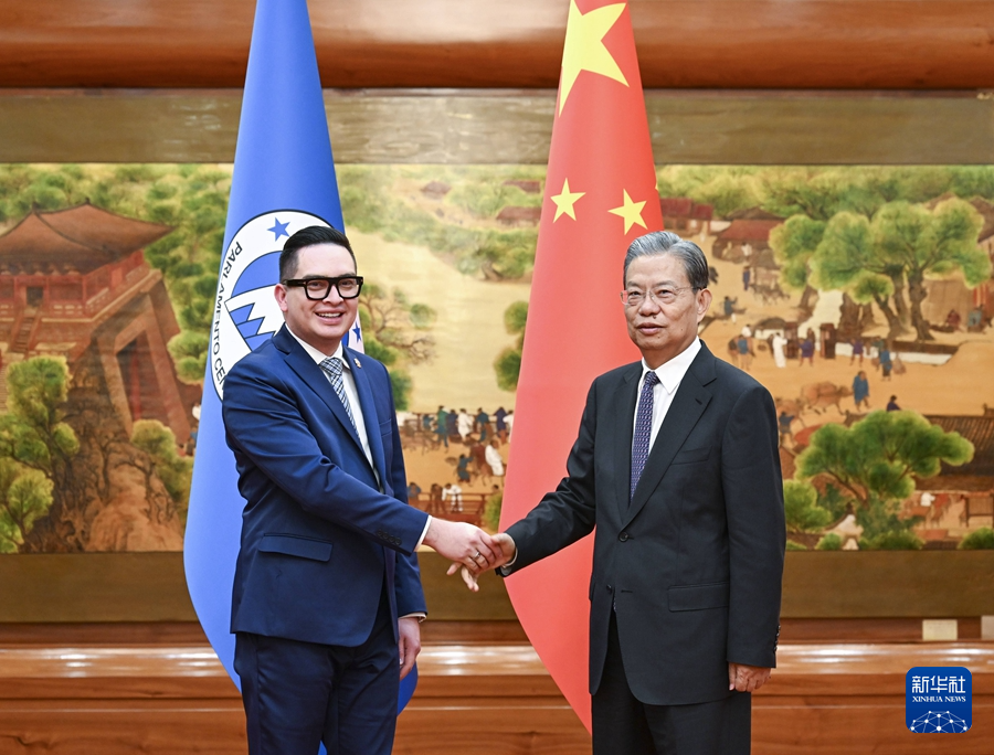 5月14日,全国人大常委会委员长赵乐际在北京会见拉丁美洲议会议长冈萨雷斯。新华社记者 张领 摄