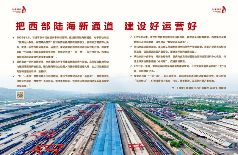《重庆市支持西部陆海新通道高质量发展若干政策措施》《西部陆海新通道高质量发展评价办法(试行)》《重庆市加快构建现代化集疏运体系实施方案(2024-2029年)》……重庆出台一系列政策举措,牵头创新高水平共建机制激发合作潜能,发挥枢纽作用带动内陆腹地提高开放能级,强化陆海联动主动融入和服务国家战略大局,全力以赴把西部陆海新通道建设好、运营好。