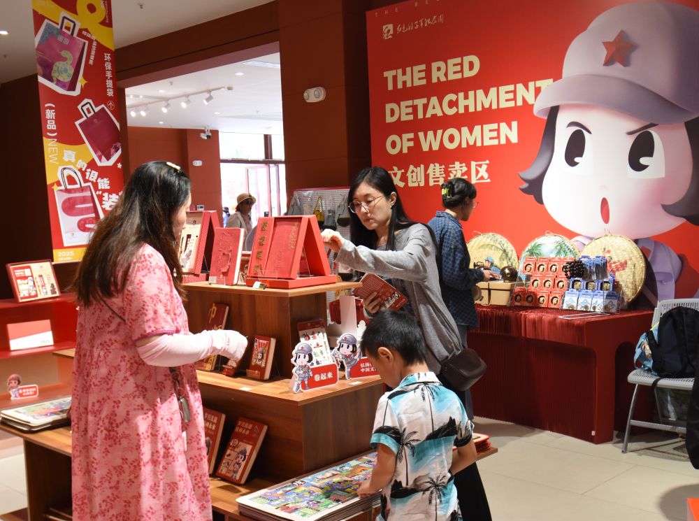 2025年1月25日,游客在海南琼海市的红色娘子军纪念馆内挑选文创产品。《红色娘子军》是家喻户晓的红色经典,红色娘子军纪念馆通过重新布展、组织丰富多彩的活动,吸引了大量游客前来参观体验。