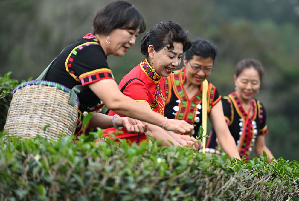 2024年1月11日,游客在海南五指山椰仙茶园体验采茶。近年来,当地将茶产业与乡村旅游、休闲农业结合,探索具有地方特色的绿色发展之路。