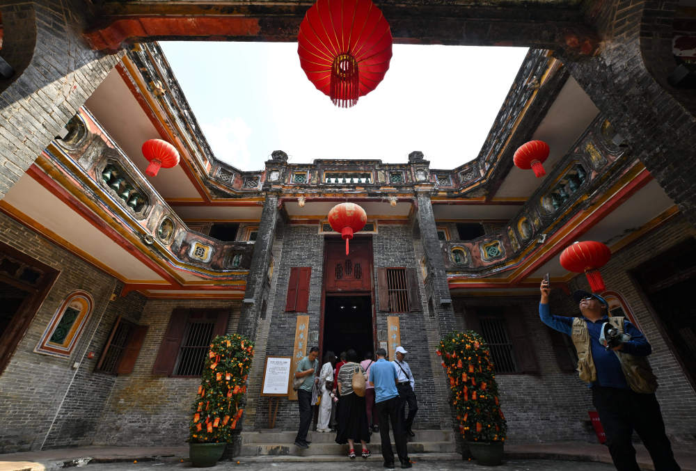 2025年3月20日,游客参观位于海南琼海博鳌留客村的蔡家宅。蔡家宅是海南侨乡民居的突出代表。在博鳌亚洲论坛的辐射带动下,琼海以“旅游+”模式赋能乡村振兴,旅游与农业、文化、海洋、交通等业态融合发展,吸引着越来越多游客参观游玩,带动村民就业增收。