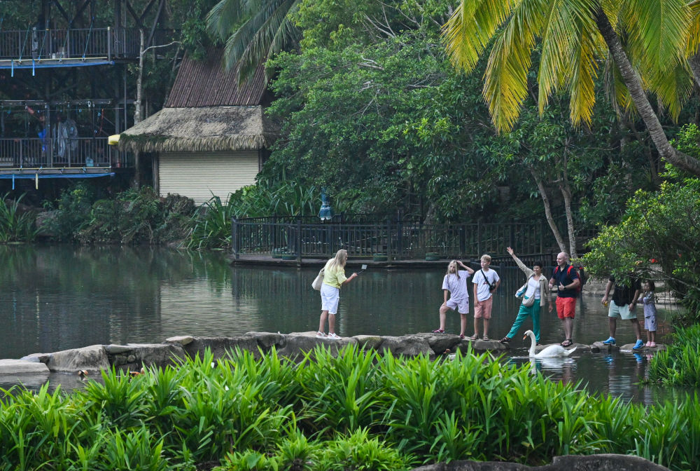 2024年11月1日,外国游客在位于海南保亭的呀诺达雨林文化旅游区游玩。据海南省旅游和文化广电体育厅统计,2024年,海南接待国内外游客超9720万人次,同比增长8%,旅游总花费超2040亿元,同比增长12.5%;其中接待入境游客超110万人次,同比增长115.6%。