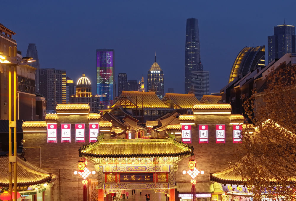 天津古文化街紧临海河,早在1404年天津设卫之前,便因漕运经济的发展,成为天津商贸活动和文化交流的聚集地,留下了众多珍贵历史遗迹。如今的天津古文化街,位列“津门十景”之一,汇聚了一众老字号和特色非遗品牌。这是2024年2月1日拍摄的天津古文化街(无人机照片)。