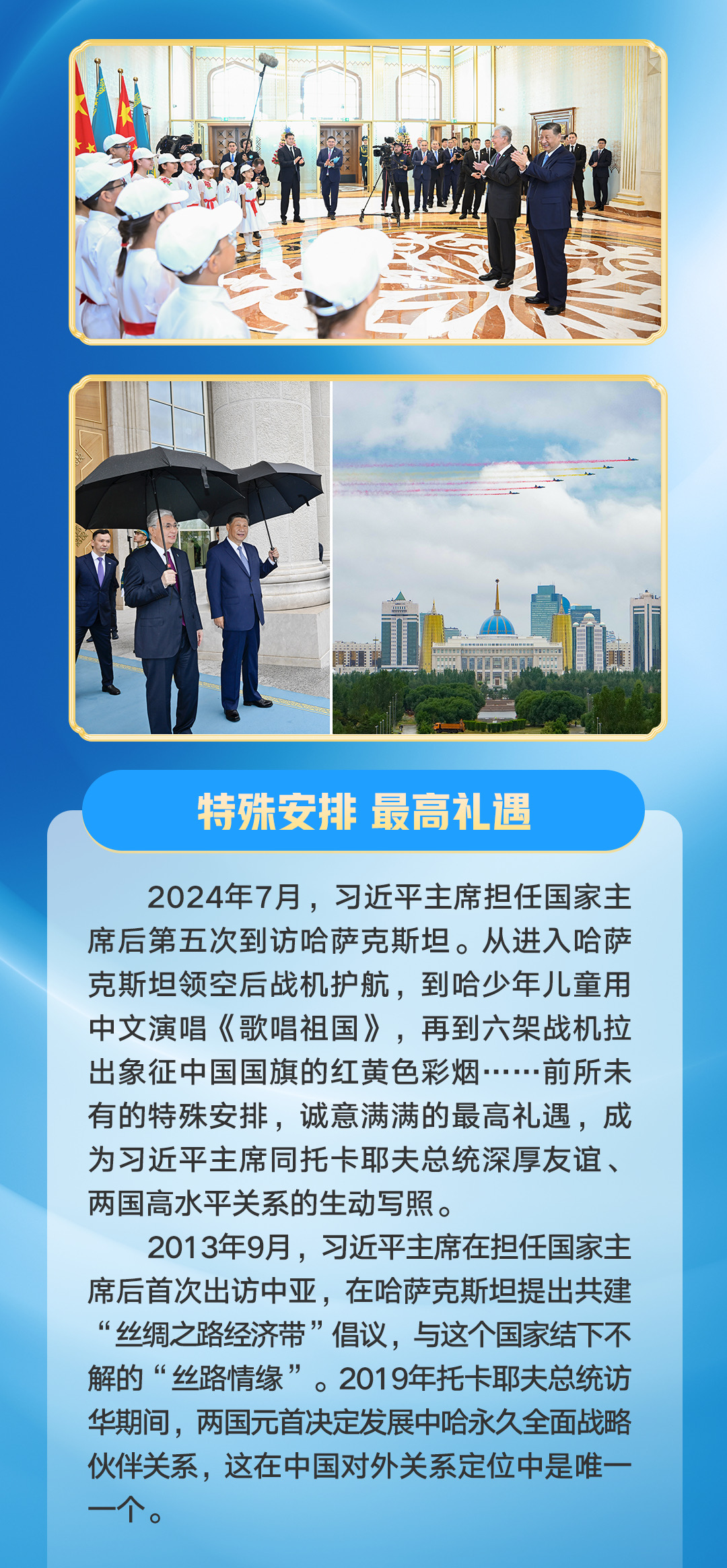 新时代以来,在习近平主席和中亚五国元首的战略引领下,中国—中亚关系实现跨越式发展,各领域合作展现出更加广阔的空间,书写了命运与共的丝路新篇。