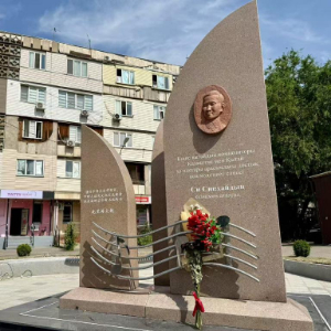 6月10日,在阿拉木图拍摄的冼星海纪念碑。新华社记者 郑开君 摄