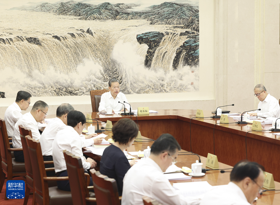 6月16日上午,十四届全国人大常委会第四十五次委员长会议在北京人民大会堂举行。赵乐际委员长主持会议。新华社记者 庞兴雷 摄