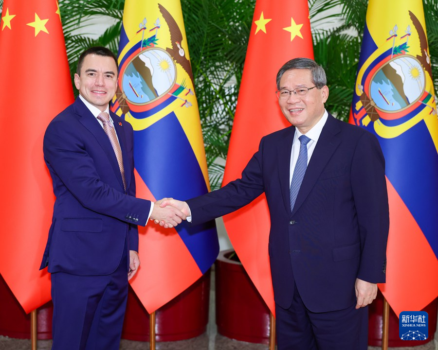 李强指出,中厄同为发展中国家,都把发展经济、改善民生作为重要任务。中方愿同厄方加强发展战略对接,密切“一带一路”合作,扩大双边贸易规模,深化在清洁能源、基础设施、金融等领域合作。中方乐见更多厄方优质产品输华,欢迎厄方用好进博会等推介平台。双方要继续加强教育、文化、青年等领域交流合作,便利人员往来,夯实两国关系的民意基础。中方愿同厄瓜多尔等拉美和加勒比国家一道,以共建中拉命运共同体“五大工程”为契机,在实现现代化的道路上携手前行。中方也愿同厄方加强在联合国等多边机制的沟通协调,践行真正的多边主义,为维护世界和平和发展、推动构建人类命运共同体作出积极贡献。