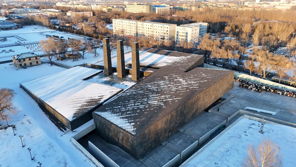 2024年12月12日,游客排队进入哈尔滨侵华日军第七三一部队罪证陈列馆(无人机照片)。2023年初,侵华日军第七三一部队罪证陈列馆将展现东北抗联斗争历程的“抗联之魂”大型全景艺术综合体收为馆藏,引进VR、声光电等展示技术,还实现了线上线下同步展示。2024年12月13日,侵华日军第七三一部队本部旧址重新对外开放,形成新馆、遗址、文物等多维度、立体化展示体系,警醒世人以史为鉴、珍爱和平。