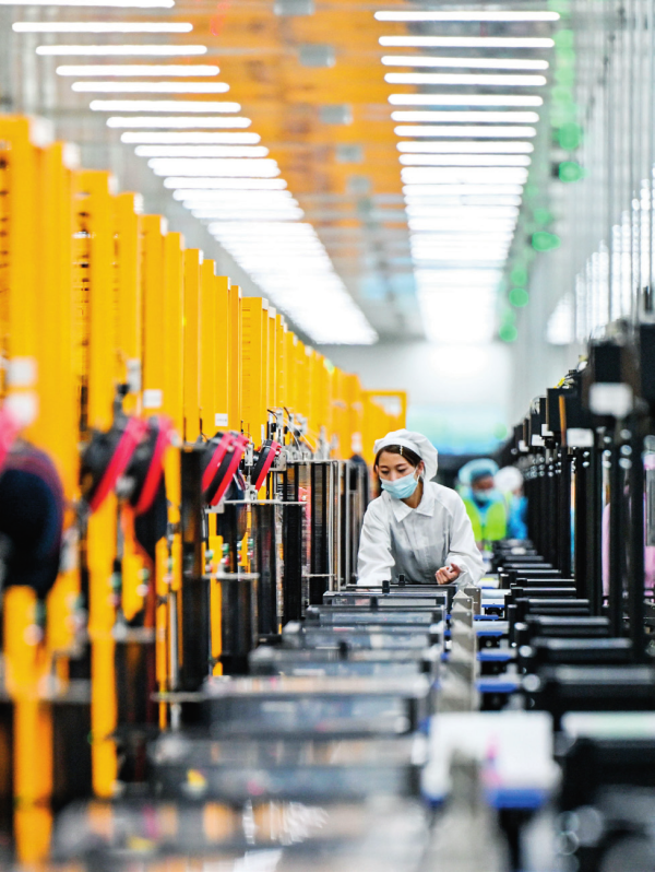 在内蒙古包头市青山区一家新能源材料生产企业,工人在车间内工作(2023年2月15日摄) 连振摄 / 本刊