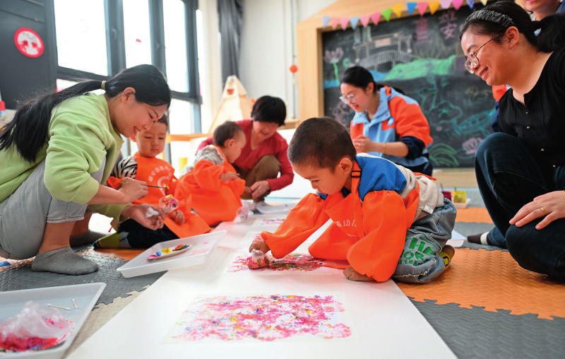 家长带着孩子在雄安新区容西片区贤溪社区党群服务中心亲子活动室玩耍(2025年3月25日摄)牟宇摄/本刊