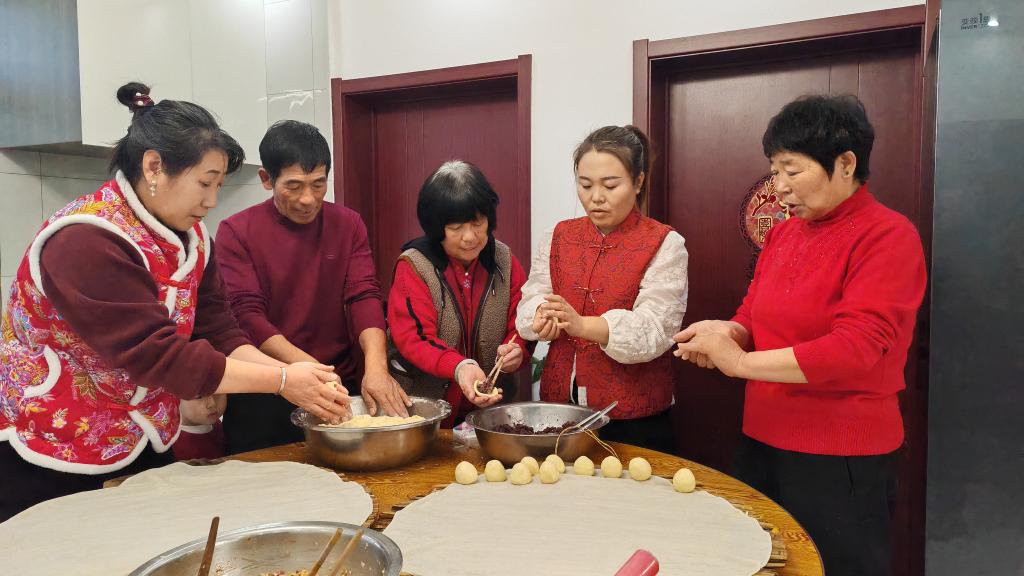 2025年12月31日晚,王宝维一家在一起包饺子。 新华社发(李健鹏摄)