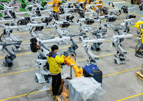 埃夫特智能机器人股份有限公司工人在制造车间装配工业机器人(2025年11月21日摄)。新华社发(赵献富摄)