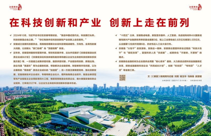 ◇2024年10月,习近平总书记在安徽考察时说,“推进中国式现代化,科技要打头阵。科技创新是必由之路。”“你们有条件在科技创新和产业创新上走在前列。”