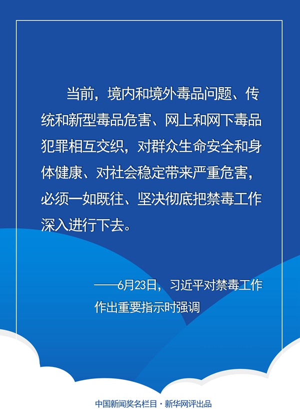 毒品一日不绝,禁毒一刻不止。治理毒品是看不见硝烟的战场,禁毒是一场必须打赢的人民战争。在禁毒这条事关国家、民族、人民利益的特殊战线上,既要清源断毒,也要完善治毒,更要全民禁毒。只有凝聚起禁毒的各方合力,织密立体防控治理网,才能铲除“恶之花”,让影响民族复兴的“毒瘤”无处遁形。(文字:马若虎 海报:张倩)