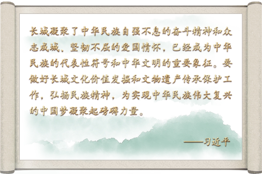 习近平总书记强调,当今世界,人们提起中国,就会想起万里长城;提起中华文明,也会想起万里长城。长城、长江、黄河等都是中华民族的重要象征,是中华民族精神的重要标志。我们一定要重视历史文化保护传承,保护好中华民族精神生生不息的根脉。