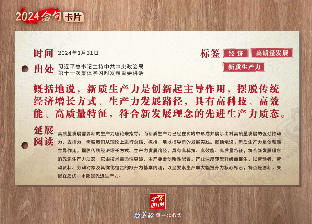 学习进行时丨2024金句卡片:习近平总书记谈“新质生产力”,这些话很深刻-新华网