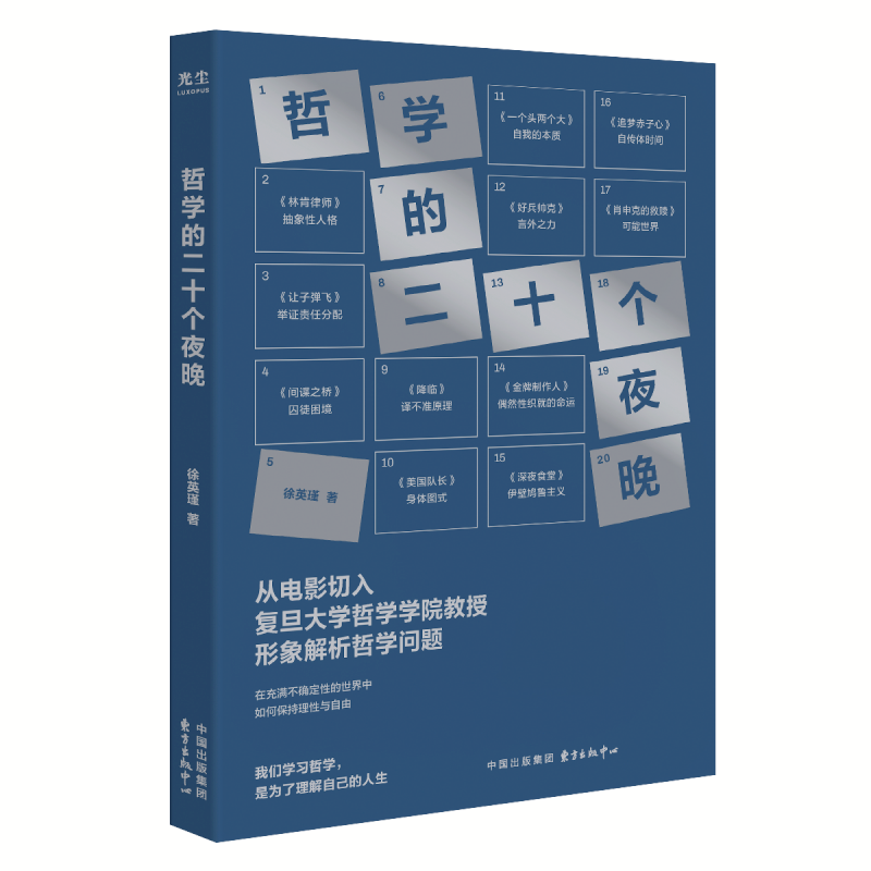 有人会说,哲学高不可攀。那么我会把《哲学的二十个夜晚》推荐给他。读这本书就像在翻阅和徐英瑾教授的深夜聊天记录,他在用电影中的故事给我们讲哲学。电影中的那些情节,在书中被拆开揉碎,深挖出其中的哲学意蕴。从《肖申克的救赎》里的自由梦想到《间谍之桥》里的合作博弈,这本书带着我们一边看电影,一边学哲学,四大主题——论证、未来、社会、人生,每一个主题都由浅入深,妙趣横生,通过二十个哲学问题帮助我们从理性的角度理解复杂多变的人生。(储学军新华网董事长)
