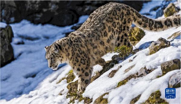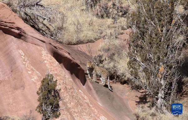 在三江源国家公园内拍摄到的金钱豹。新华社发
