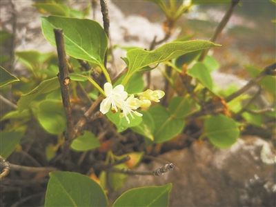 记者6月18日从北京市园林绿化局了解到,在开展全市野生植物保护联合检查过程中,工作人员在门头沟区清水镇一处山脊的崖壁上发现了我国丁香叶忍冬最大实生群落,经初步统计,现场的丁香叶忍冬超过100株,最高的植株有1米多。