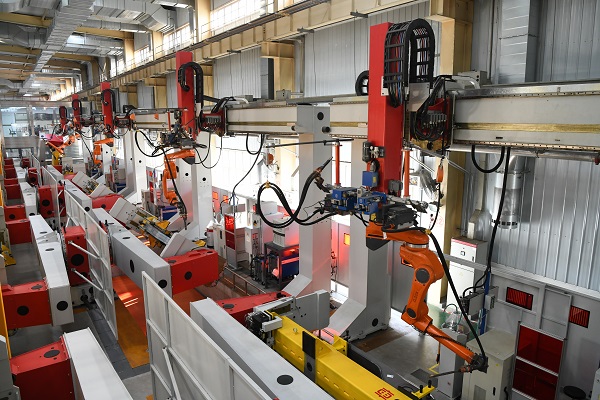 其中,转向架分厂两轴构架自动焊接产线作为中车大连公司实施数字化转型升级打造的数字智能化柔性焊接产线,是公司迈向智能制造的重要里程碑。它承担着公司两轴构架的侧梁和横梁组对、焊接等关键工序,实现了由传统制造向智能制造的华丽转身。