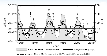 答:长期观测发现,在太阳黑子数多的时期(太阳活动高年),梅雨带明显北移,而在黑子数较少的时期(太阳活动低年),梅雨带明显南移。