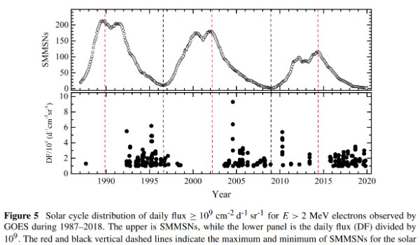 问:人们对长期的太阳黑子数描述的太阳活动和极端空间天气事件的关系方面有没有什么发现?
