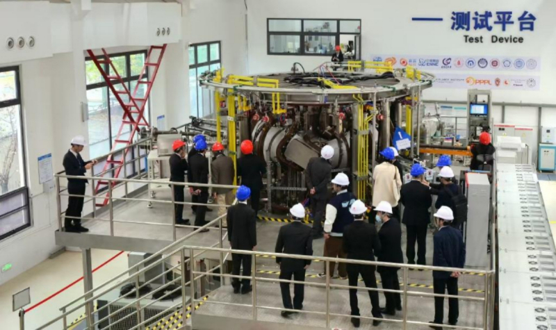 在成都召开的中国首台准环对称仿星器测试平台成果交流会上,与会嘉宾参观准环对称仿星器测试平台(11月13日摄)。新华社发(西南交通大学供图)