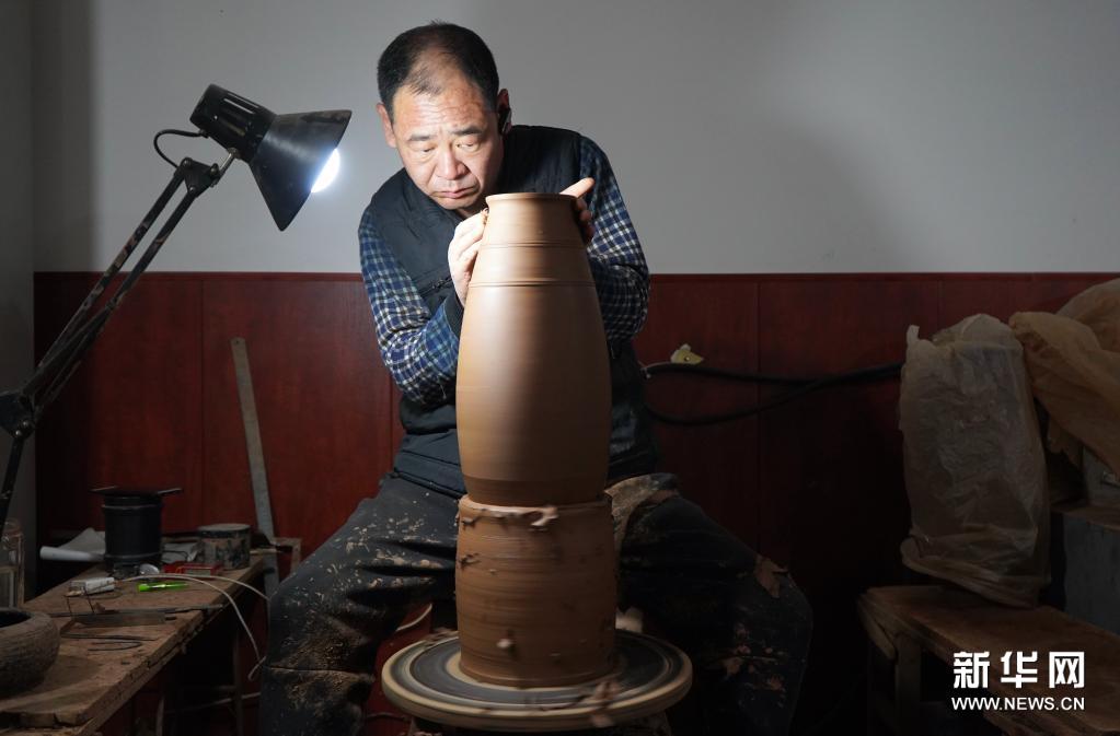 4月20日,在馆陶县陶艺漆艺研究所,一名工人在进行修坯作业。新华社记者 金皓原 摄