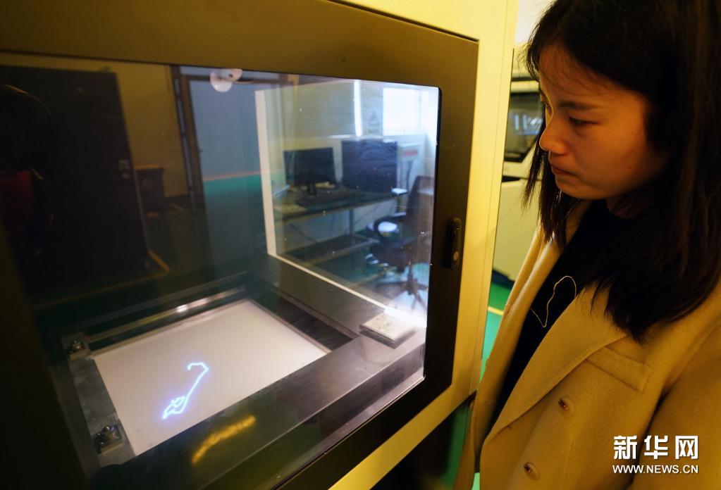 工作人员在西安国家增材制造创新中心的3D打印室内打印浮雕碎块(4月7日摄)。新华社记者 李安 摄