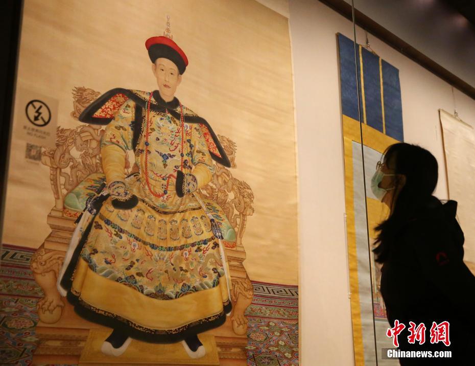 5月6日,北京故宫文华殿,参观者观赏乾隆皇帝人物画像。近日,“庙堂仪范——故宫博物院藏历代人物画特展(第一期)”在北京故宫开展。 中新社记者 易海菲 摄