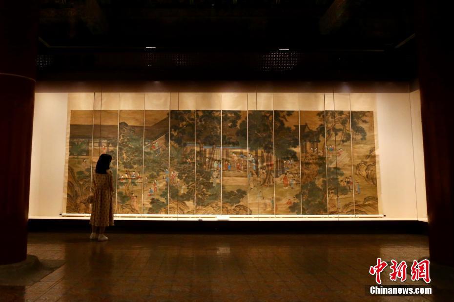 5月6日,北京故宫文华殿,参观者观赏《韩琦昼锦堂图》通景屏。近日,“庙堂仪范——故宫博物院藏历代人物画特展(第一期)”在北京故宫开展。 中新社记者 易海菲 摄