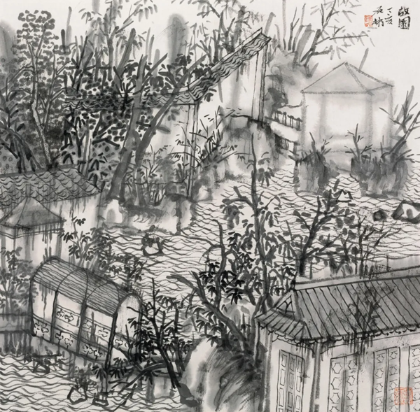 虽然何加林一直致力于表现自然的山水造化,但实际上他对古人丘壑的汲取早已转化为个人心象,从而建构出一种既源于江南山水的园林风貌,又自然而然地转换为笔墨的清润与恬淡,还具有水墨氤氲质感和现代视域下的山川造化肌理。由此,何加林山水画中别具格调的艺术风貌究竟来自何处?他在学院的教学相长和画院的创研思考,在几十年的艺术生涯之中到底如何结合?这些都成为我们赏读何加林艺术创作的重要角度。
