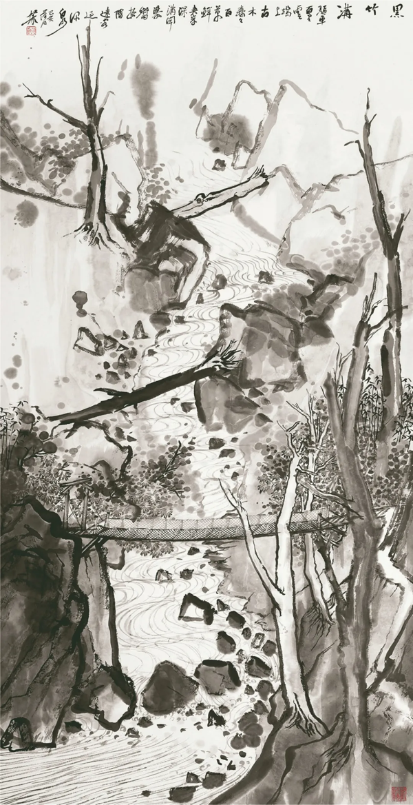 如今,何加林的山水绘画已经确立了鲜明的风格语言,但他仍然自觉地坚持着要跳出既成格法,不断地推陈出新、追求变革。例如他极力主张“变古为今”,使得他的作品虽然凝聚着浓厚的传统笔墨的氤氲味道,但扑面而来的永远是一股生机盎然的新意,这也正是何加林的山水画中令人着迷的因素。所以,假如仅从笔墨图式、皴法结构等技法语言层面去解读和评价何加林的山水作品,势必有失偏颇,但如若回归并深入他的生活,想必会在其中得到更深的解悟。