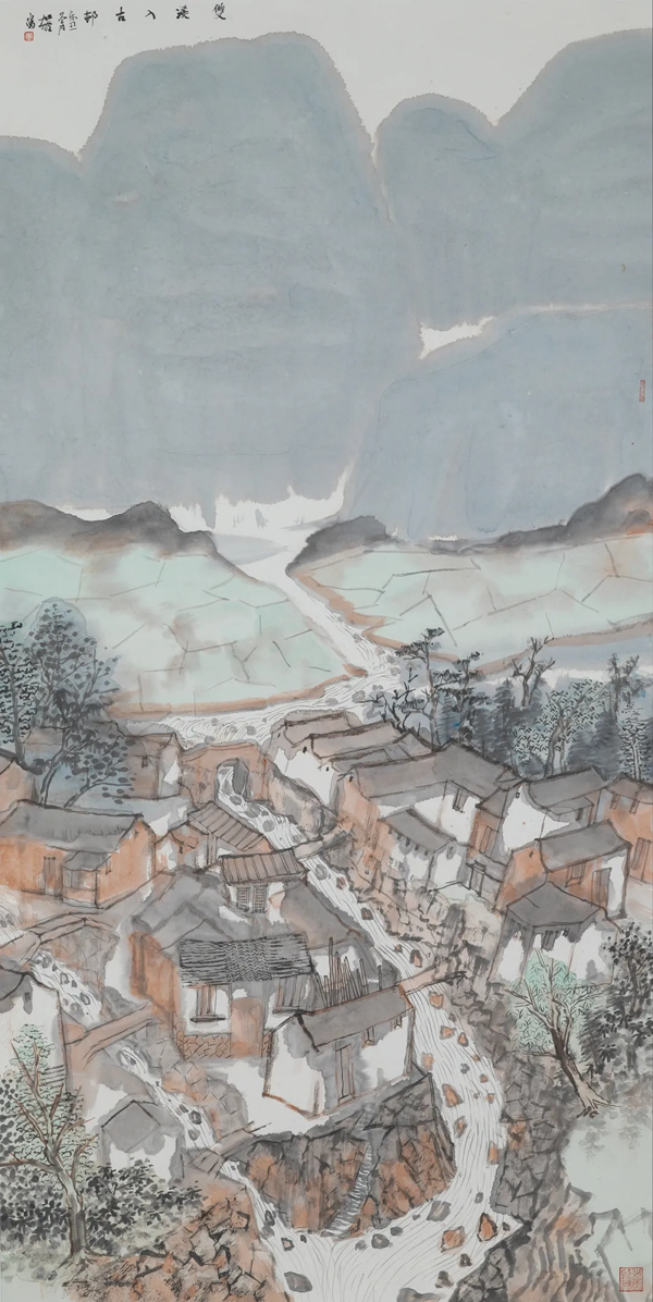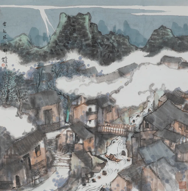 总而言之,何加林试图在走遍世界的行迹之中,运用文人画的笔墨语言去呈现一种触目感的体会,通过笔墨图示和色彩语言的不断打散与重组,最终形成一种鲜活而清透的艺术风貌。这种艺术特点使得何加林的山水画既没有进入抽象艺术的范畴,也没有游弋到受西方印象派影响的现代彩墨体系,而是一直坚守和强化着当代文人绘画的精神品格,充分展现了何加林艺术创作在当代语境中的重要意义。此外,我时常认为何加林的每幅作品都仿佛是一个浓缩的寓言,既体现着中国文人对于家国和世界的观瞻视角,也蕴藏着一位现代艺术家面对未来的艺术自觉和文化内省。何加林以一种平和、温润而美好的善意去观察世界,恰好彰显着其艺术创作中明确的指向和蕴藉的深意。