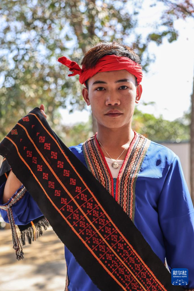 2月9日,黄杨伟在家门前穿戴黎族服饰。 新华社记者 张丽芸 摄