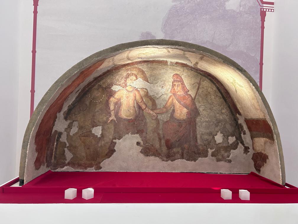 这是“描绘珀耳修斯和安德罗墨达的彩绘石膏壁画”(真品)(6月13日摄)。新华社记者 张玉洁 摄