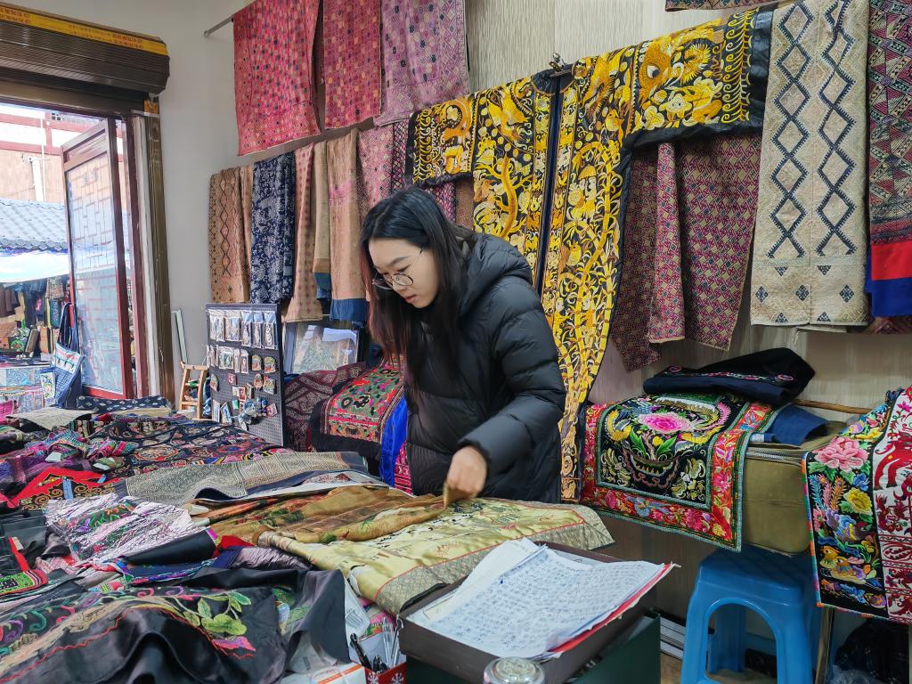 针对游客感兴趣的绣品,潘玉珍总是耐心介绍纹样的文化寓意,她希望游客带走的不只是商品,更是背后深厚的民族文化。“我们的手工艺品受到国内外游客的认可和喜爱,这让我很有信心。”潘玉珍自豪地说。