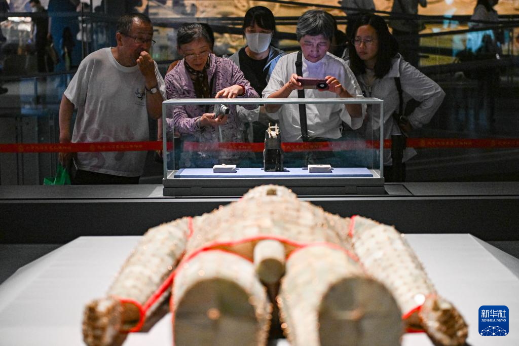 5月20日,观众在拍摄一号墓展区的文物展品。