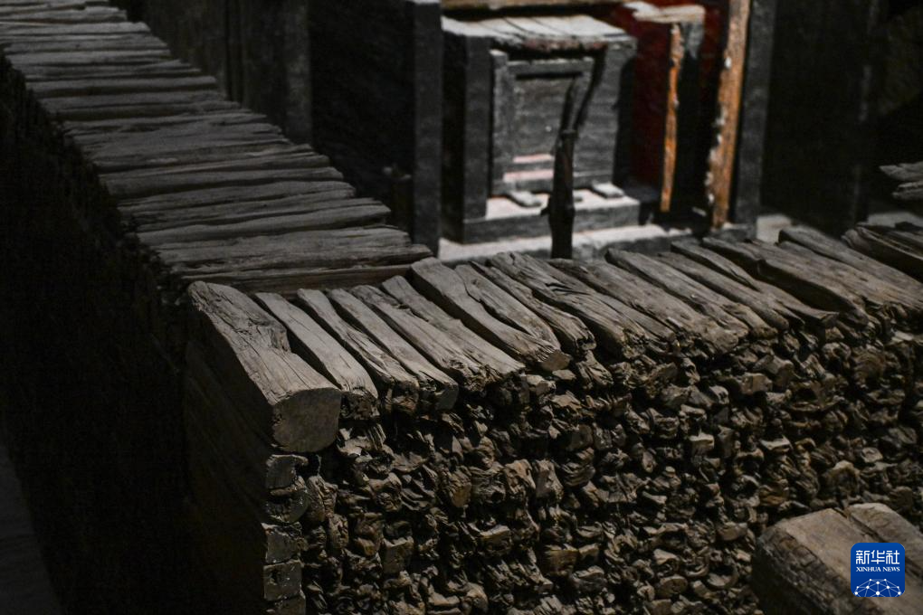 这是5月20日拍摄的一号墓“黄肠题凑”所用的柏木条。