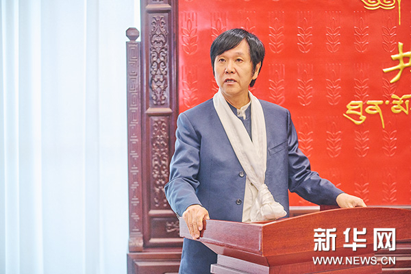 西藏美术家协会名誉主席唐天源与中国文艺志愿者协会副主席、中国美术家协会理事、中国国家画院美术馆原馆长何加林作为艺术家代表,在启动仪式上致辞。