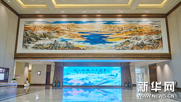 这幅高原题材的壁画长25米、宽6米,是目前中国高原画派最大的作品之一。其以西藏的神山圣湖为题材,采用中国高原画派独特的创作手法绘制而成,呈现了西藏高原雄浑壮美的自然风光,创作注重情感共鸣与社会责任,令受众充分感受到西藏的文化魅力。