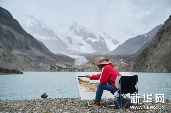 6月17日,“文化西藏 天上画卷”高原高峰艺术家西藏行写生活动走进廓琼岗日冰川。